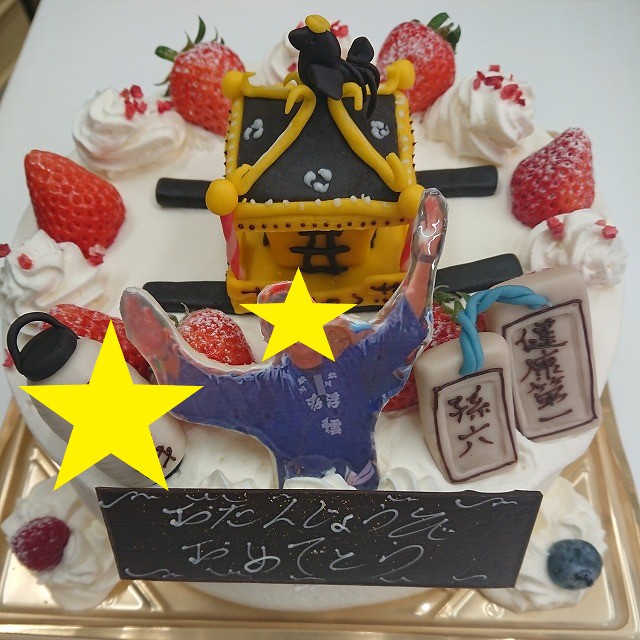 ▲青梅のケーキ屋「パティスリーテロワール」御神輿・提灯・木札ケーキ