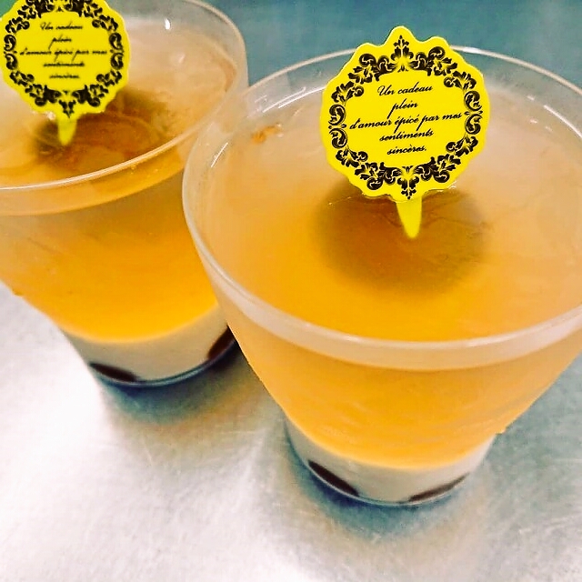 2020年は有機栽培のコーヒーを使用したコーヒーゼリーの上に東京の牛乳を使ったミルクゼリー、オレンジリキュールを使用したゼリーの3層仕立てです。