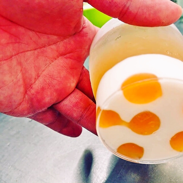 梅ゼリーの底に入れている梅ジャムはちょっとだけ梅の花を意識しております(笑)