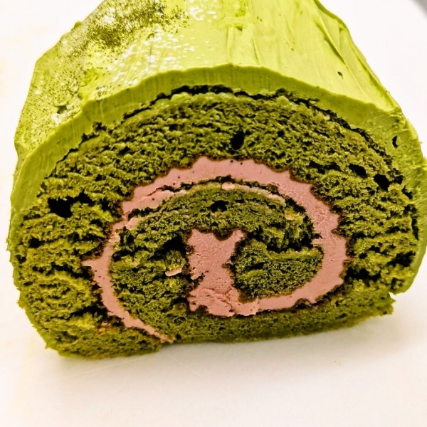2025年のクリスマスケーキを順次紹介していきます。今回はブッシュドノエル。2025年は東京都瑞穂町にある西村園の東京抹茶ゴールドを生地と周りのバタークリームに使用しました。中は苺のバタークリームです。