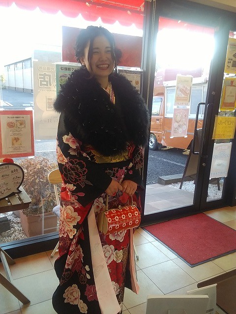 昨年まで働いてくれて、現在某所でパティシエールとして活躍中の新成人も晴れ着姿で来てくれました。