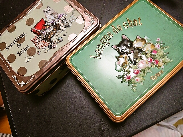 こちらが人気の商品の1つです。どちらもお菓子のミカタでリビエールさんがオリジナルで作った缶なので当店では購入できません。