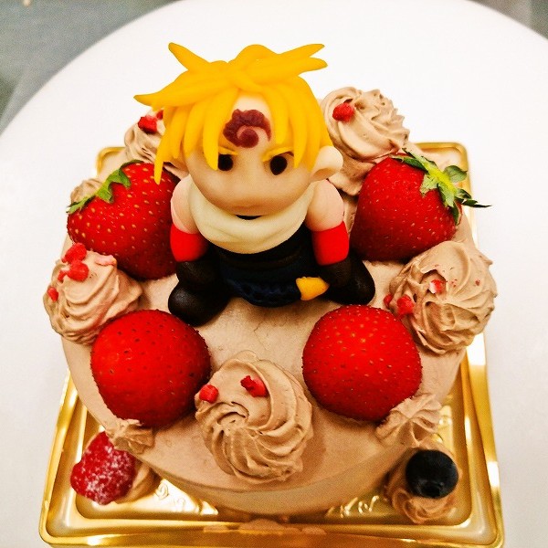 生チョコデコレーション4号サイズにマジパンをのせたケーキです。