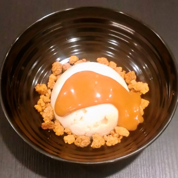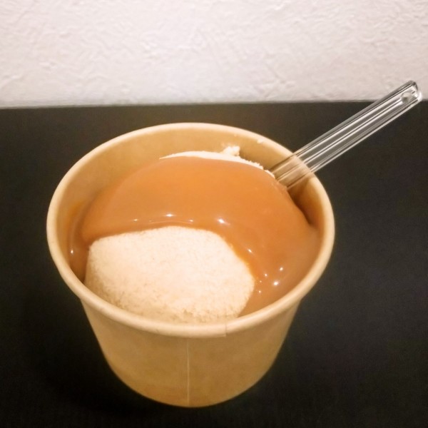ソースもキャラメルです。周りには粒状のクッキーがあり、食感のアクセントになっています。