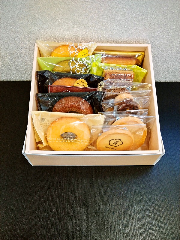 こちらはクッキー系の焼菓子を13個詰め合わせたギフトで紙手提げがついて税込2,000円です。