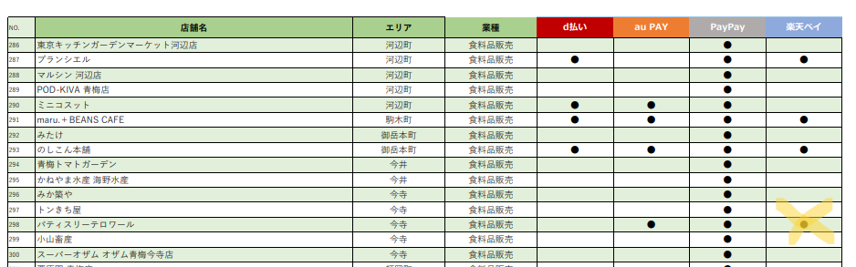 駐車場は店頭に4台分のスペースがございます。バツ印の部分はトンきちやさんのスペースのため駐車はご遠慮ください。
