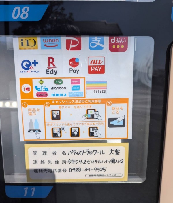 ▲青梅のケーキ屋「パティスリーテロワール」自販機の決済方法