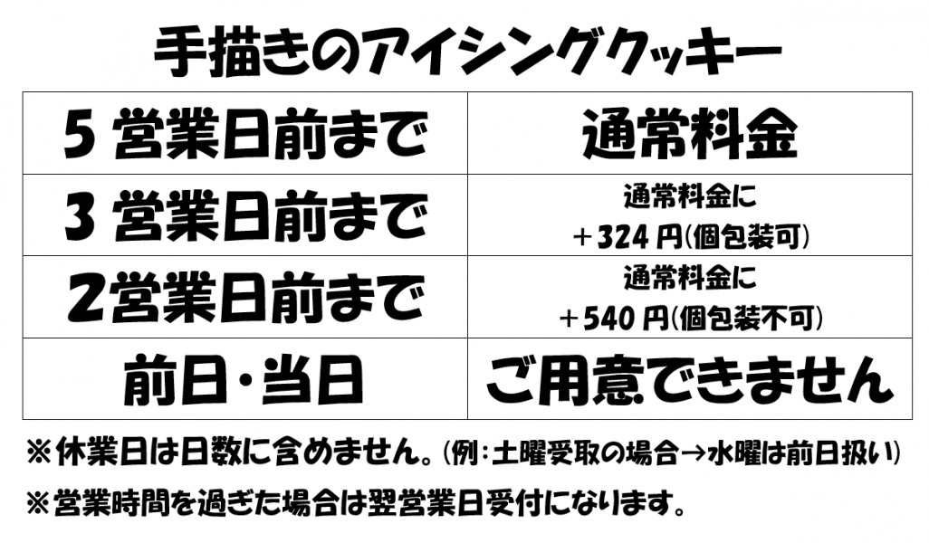 1個税込1188円~ 数字・文字アイシングは 1個324円~ |